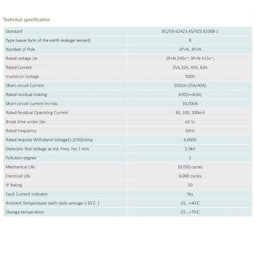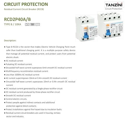 TAZINI RCD 2P 40A 30mA B-TYPEAS/NZS APPROVAL