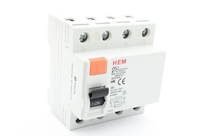 HEM RCD 63A TYPE A 4POLE 6KA