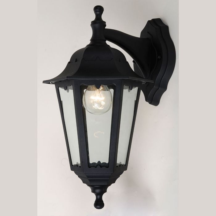 Outdoor plastic wall lantern (IP rated). It is cost-effective general exterior lighting solution, especially for coastal installations where corrosive elements affect other materials.