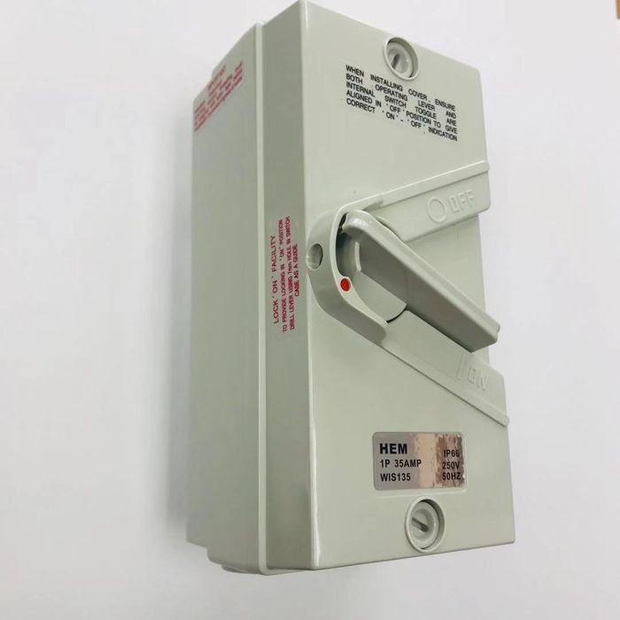 TANZINI IP66 Isolating switch rates at 35A, and meets AS/NZS standards. Good for isolating air condintioner, hot water cylinder, and other applicances.