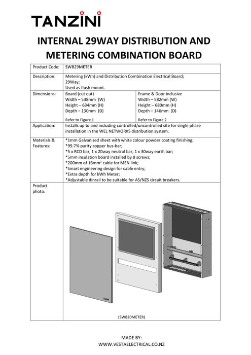 Tanzini Switchgear has been contacting with WEL Networks since 2019 to understand their meter board requirements. The achievement from this is Tanzini has specifically developed a distribution and metering combination board for use in WEL Networks distribution system.