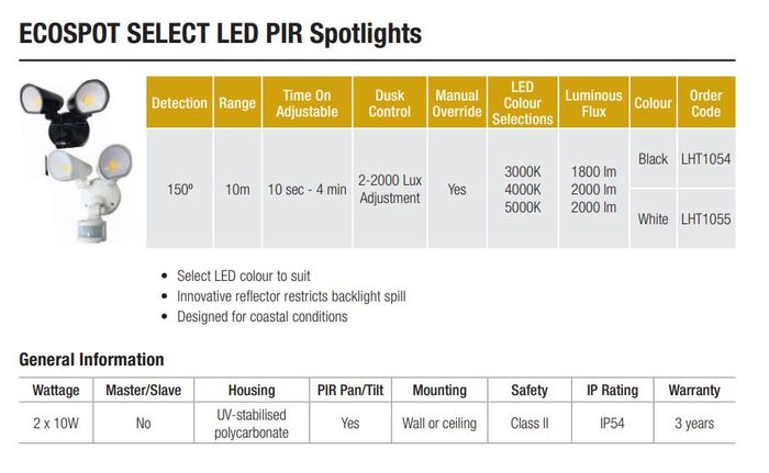 EcoSpot PIR Spot LED 2 x 10Watt Black
