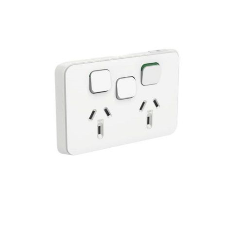 - ICONIC DOUBLE SOCKET HORIZ 10A WITH EXTRA SWITCH WHITE
