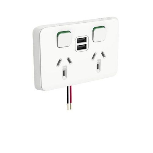 - ICONIC Double Socket Horizontal 2xUSB 10A 250V White