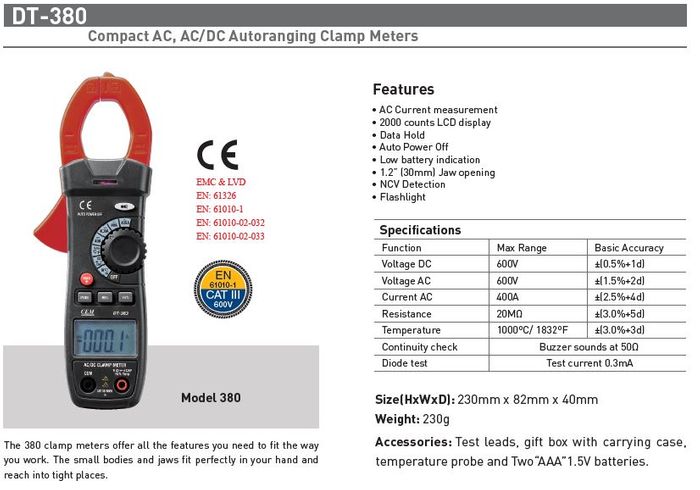 Compact Clamp Meter DT-380 CEM