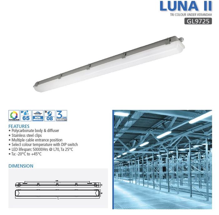 UNDER VERANDAH LED 60W 1.5M TRI-COLOURIP65