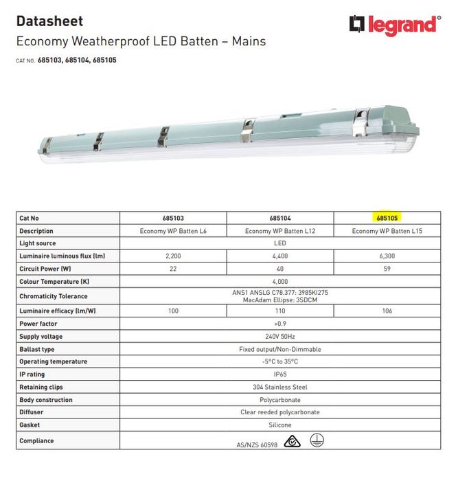 LED useful life of 40,000hrs L70 at ambient temperature up 35degree