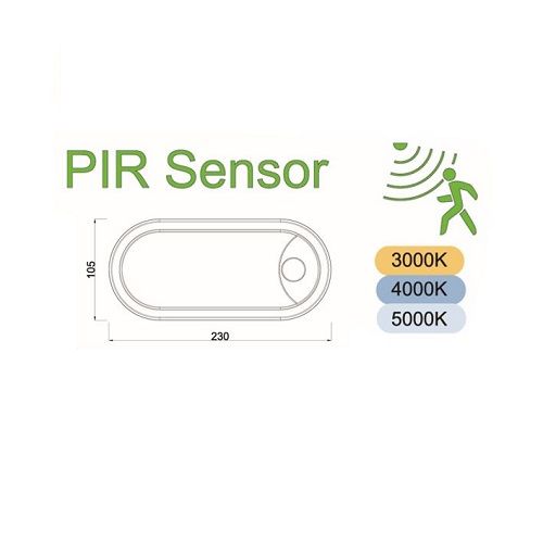 PIR BulkHead 12W IP65 CCT3/4/5K