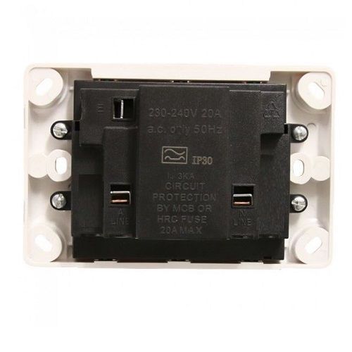 Designed to be a direct replacement for your standard powerpoint fittings, combining two standard 230AC 10A mains (powerpoint)outlets with a built-in RCD to provide protection against electrical shock. In the event of a fault with the connected appliance or accident, such as a cut through the mains lead, the unit will provide complete isolation from mains. A test button, status indicator, and reset button allows you to check the RCD, which we recommend should be done each time before use.