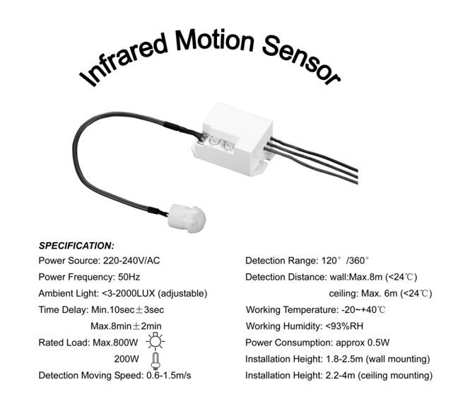 HEM INFRARED SENSOR 800W WITH WALL SWITCH