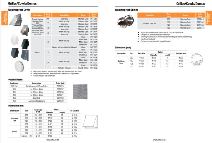 DataSheet: https://simx.co.nz/images/uploads/resources/02_Grilles_Diffusers_and_Ducting_Section_2305_-_Weatherproof_Cowls.pdf