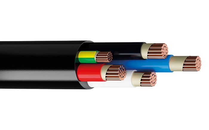 Four core plus earth circular cable with V-90 insulation.