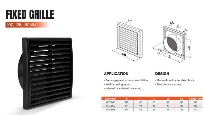 - BLACK 100mm FIXED GRILLE