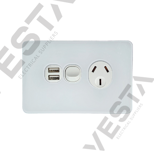 ACG Series 10A Single Socket Hori with 2A USB - Acrylic Cover