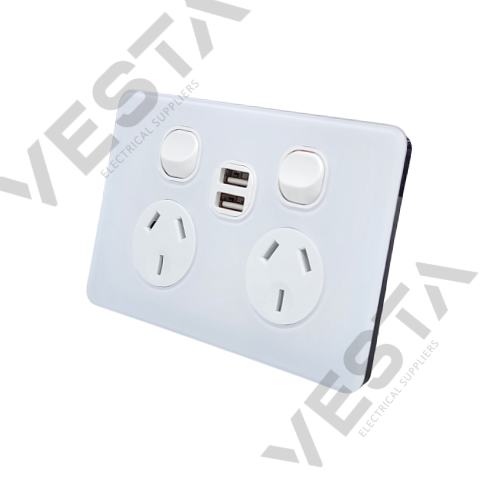 - ACG Series 10A Double Socket Hori with 2A USB - Acrylic Cover