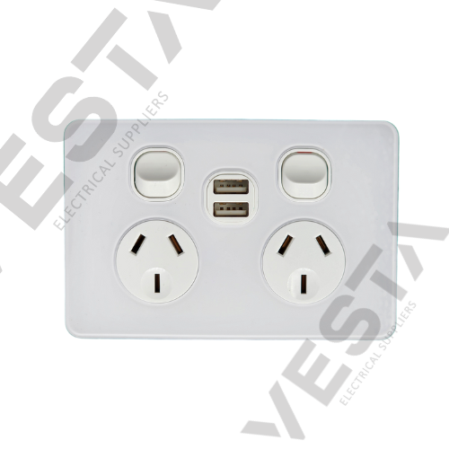 ACG Series 10A Double Socket Hori with 2A USB - Acrylic Cover
