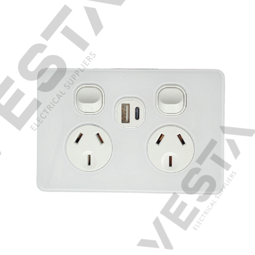 - ACG Series 10A Double Socket Hori with Type A+C USB