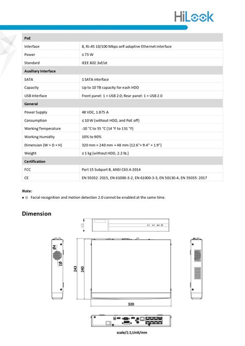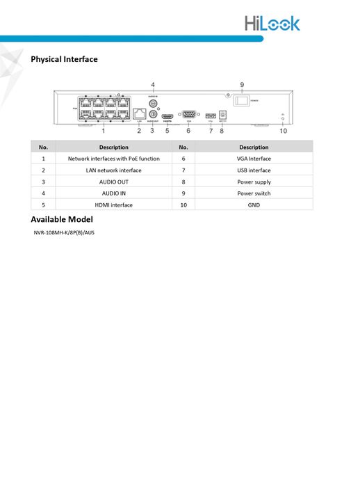 HILOOK 8 Channel NVR PoE 1U K Series AI