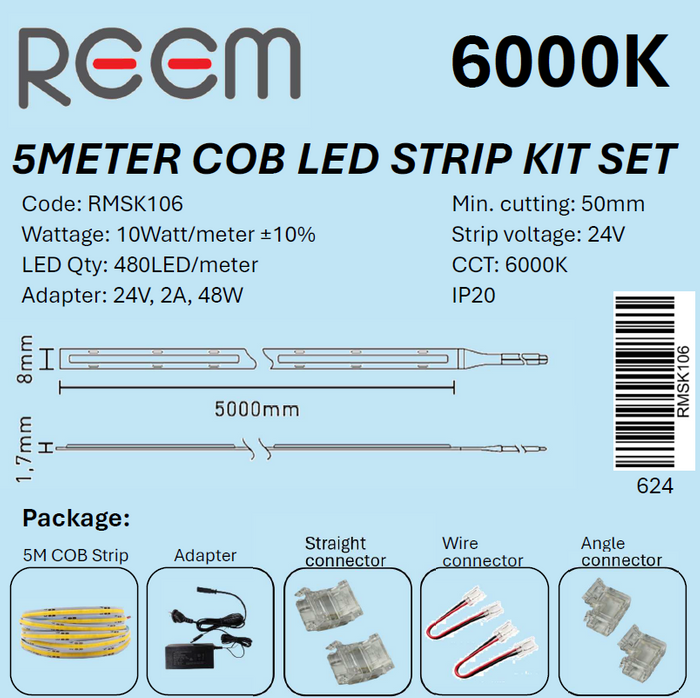 - Strip LED Kit 6000K 5Meter IP20 COB