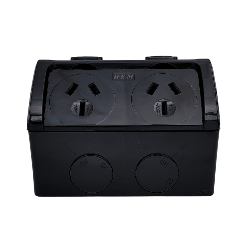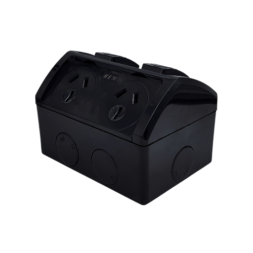 - BLACK 15A Double Socket Weatherproof IP53 HEM
