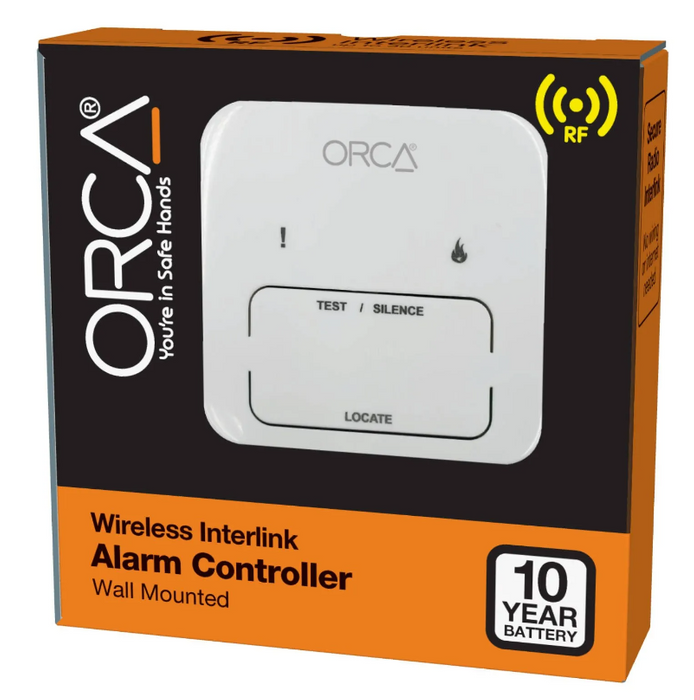The Orca Intelligent Wireless Interlink Technology allows multiple units to be wirelessly interlinked to protect the whole household. When one alarm activates, the entire network activates. This control unit gives full control over a network of alarms from a central point without having to inconveniently deal with individual alarms spread throughout the house. Its capabilities include: