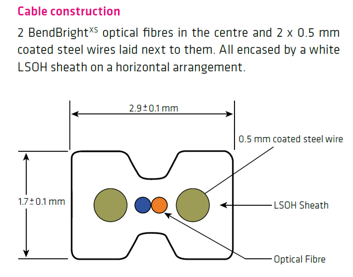 2 BendBrightXS optical fibres in the centre and 2 x 0.5 mm