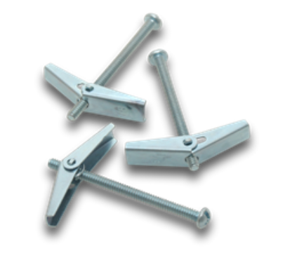 The toggles are closed over and passed through the required size hole in the hollow base material, once through the toggle opens and the tightening of the screw secures the toggle at the back of the base material.