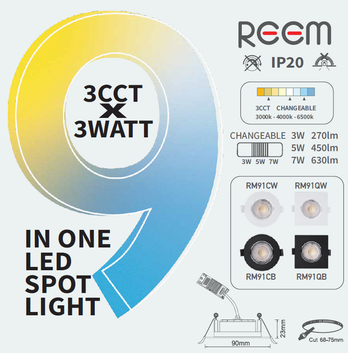 - REEM White Round Tilt LED Spot Downlight Changeable Wattage and CCT