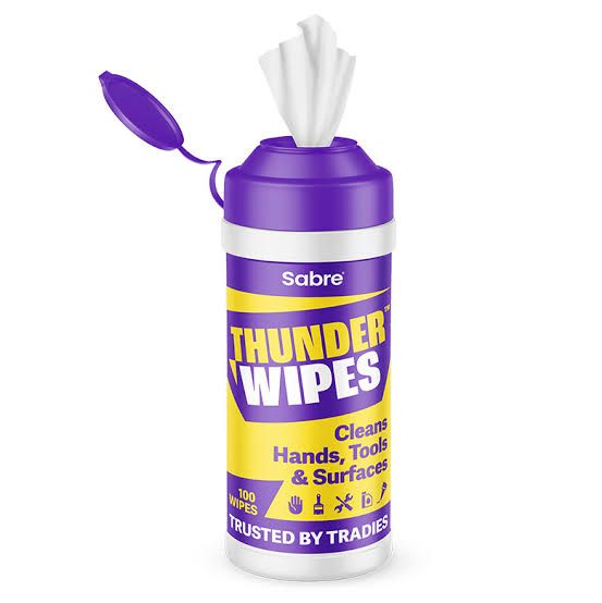 Tackle tough mess rapidly with Sabre THUNDER WIPES™, the superior cleaning wipe for removing paint, adhesive, sealant, bitumen, silicone, uncured PU foam, epoxy, polyurethane, resin, oil, ink and grease from tools, hands and surfaces. Proudly Kiwi owned, Sabre THUNDER WIPES™ are trusted by tradies for everyday trade and DIY use.