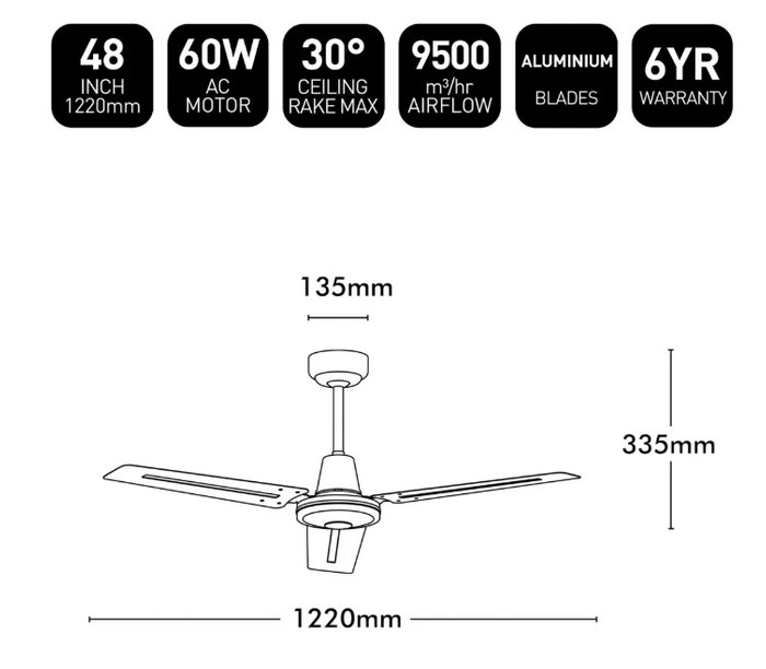 Pacifica is a classically styled metal fan with 3 easy slide-on blades to make installation a breeze.