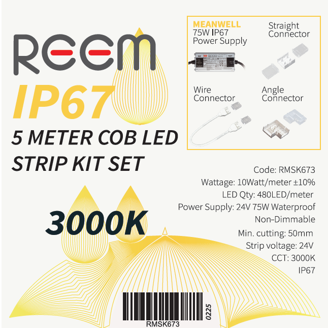 - IP67 LED Strip Light 5Meter 3000K Meanwell waterproof power supply