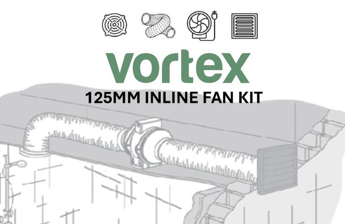125MM TWO SPEED Inline Fan Kit incl. ducting and grilles VORTEX