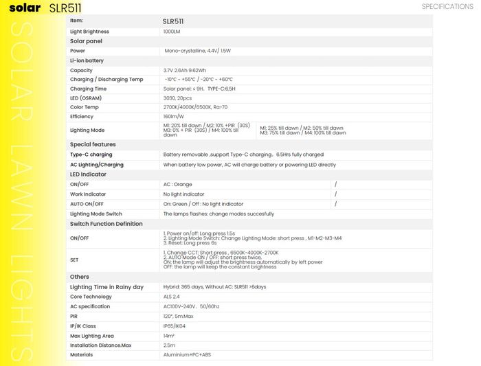 Hybrid function (AC , solar charging or Type-C USB charging)