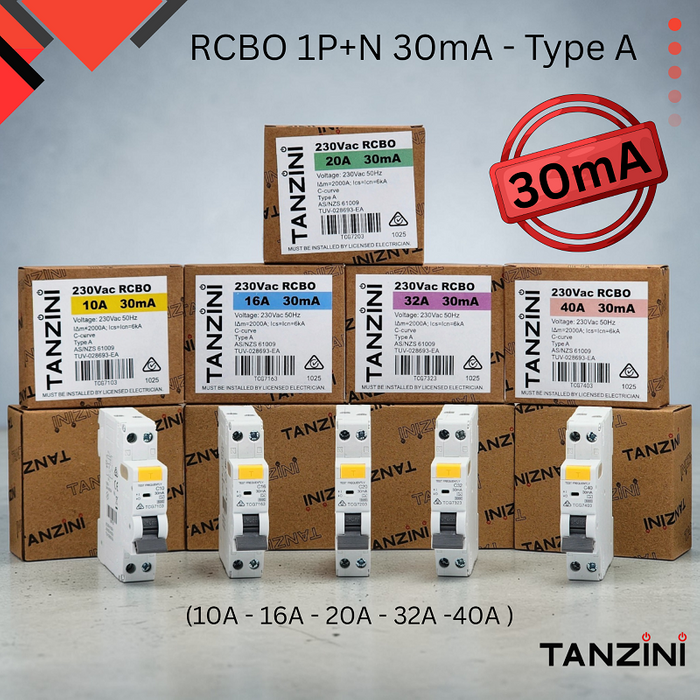 - TANZINI RCBO 1P+N 32A 30mA