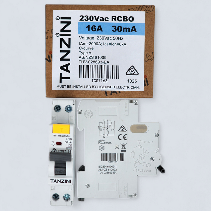 - TANZINI RCBO 1P+N 16A 30mA