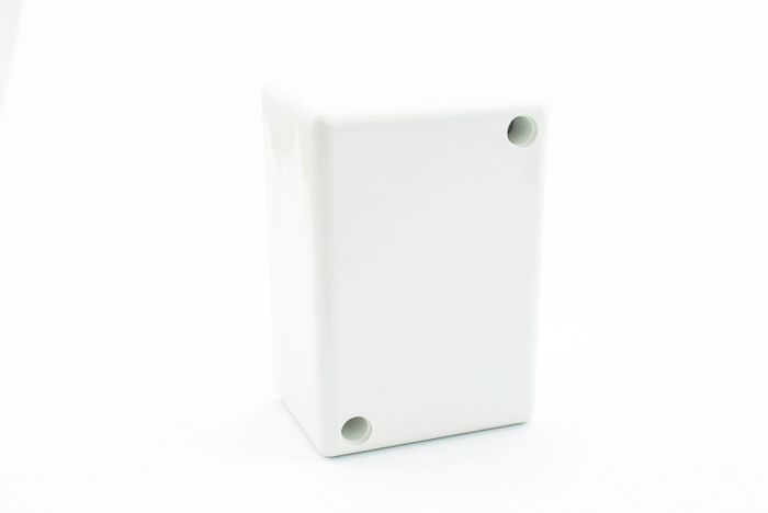 Large standard junction box made from polycarbonate material with a white glossy finish.