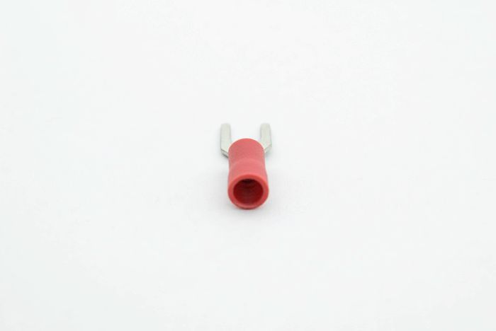PVC fork terminal with easy entry holding a maximum cable size of 1.5mm and 3mm stud size.