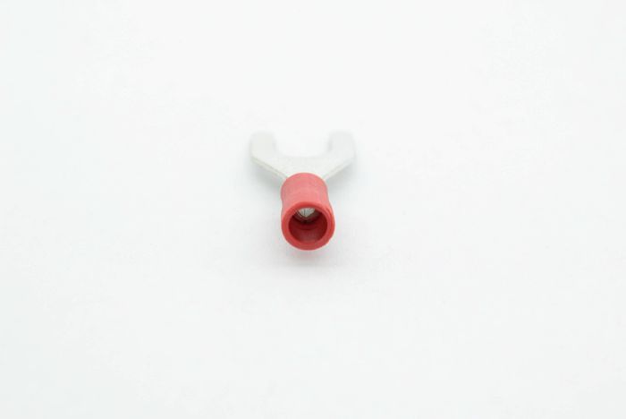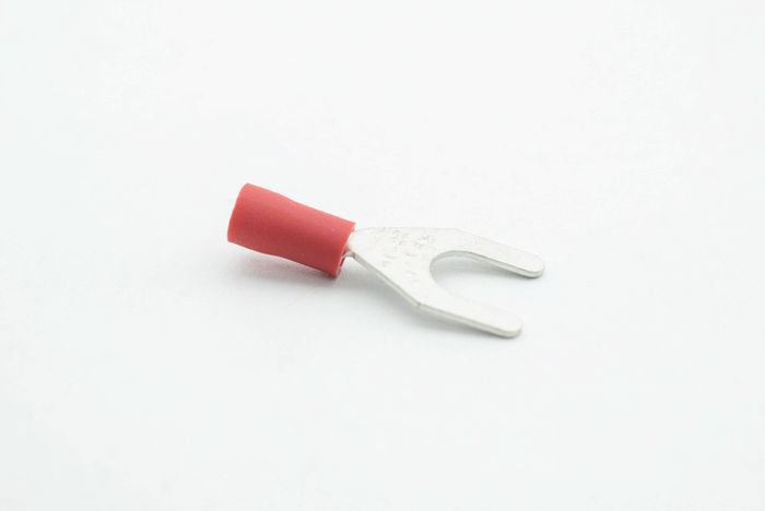PVC fork terminal with easy entry holding a maximum cable size of 1.5mm and 6mm stud size.