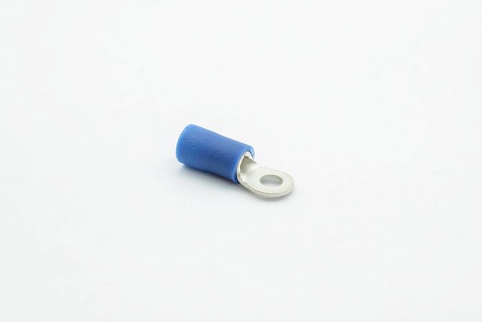 PVC fork terminal with easy entry holding a maximum cable size of 2.5mm and 3mm stud size.