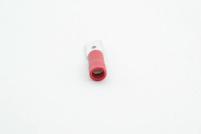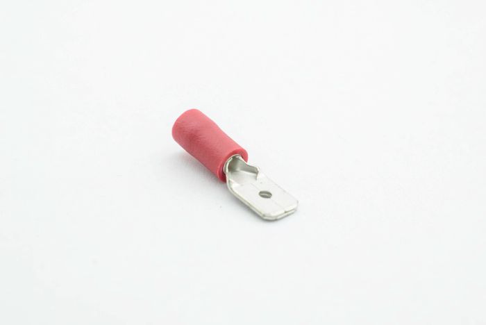 PVC male tab with easy entry , holding a maximum cable size of 1.5mm and a hole blade size of 6.4mm.