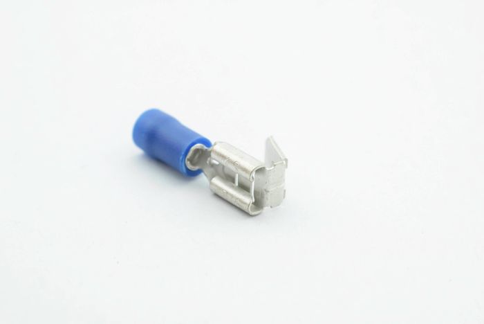 PVC piggy back quick connector with easy entry , holding a maximum cable size of 2.5mm and a hole blade size of 6.4mm.