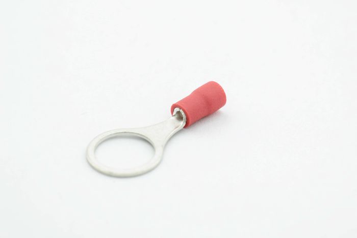 PVC ring terminal with easy entry holding a maximum cable size of 1.5mm and stud size of 10mm.