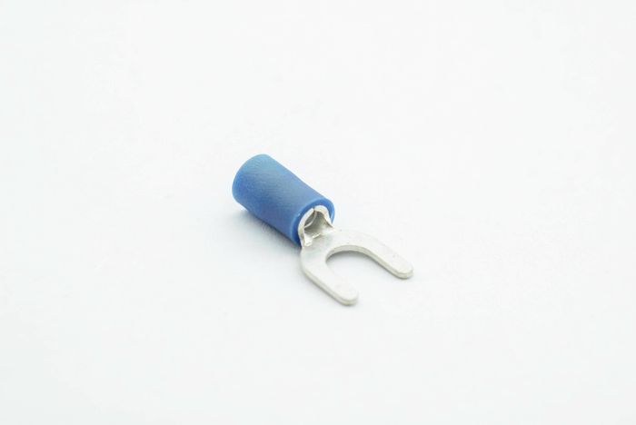 PVC ring terminal with easy entry holding a maximum cable size of 2.5mm and stud size of 5mm.