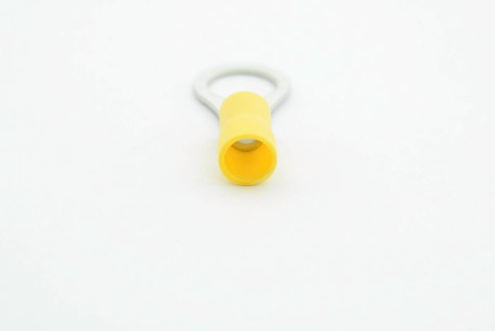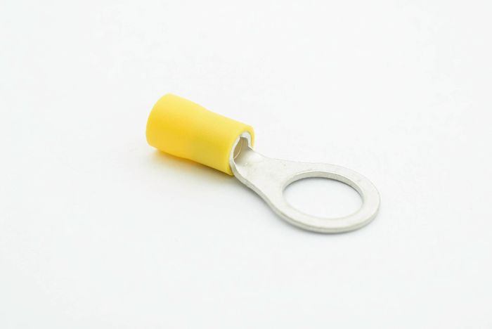 PVC ring terminal with easy entry holding a maximum cable size of 6mm and stud size of 10mm.