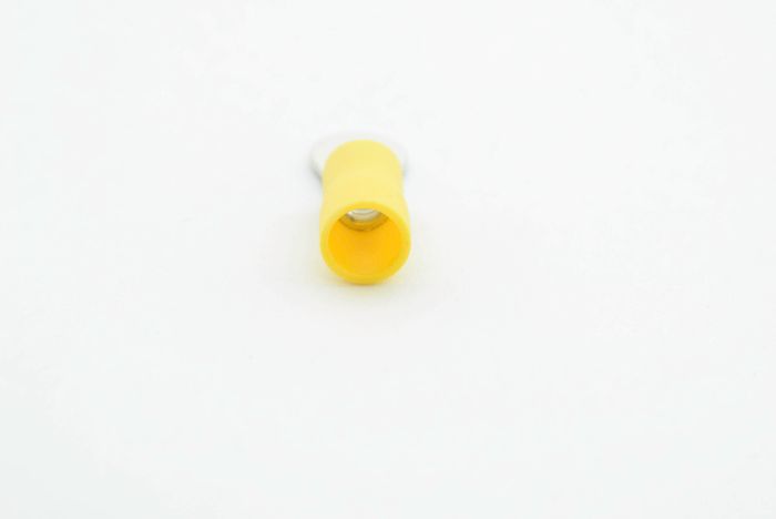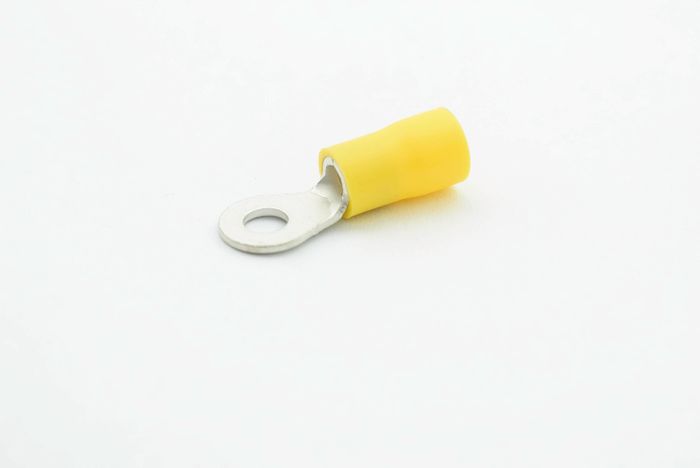 PVC ring terminal with easy entry holding a maximum cable size of 6mm and stud size of 4mm.