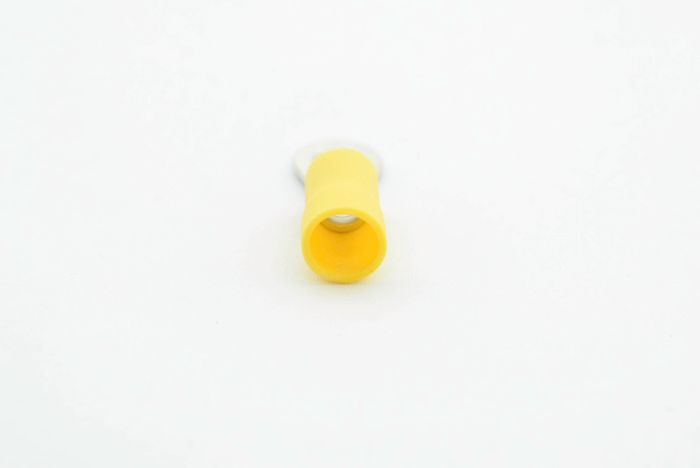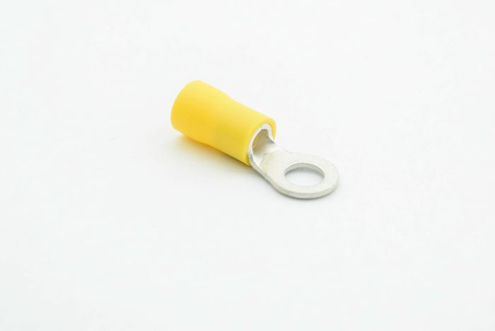 PVC ring terminal with easy entry holding a maximum cable size of 6mm and stud size of 5mm.