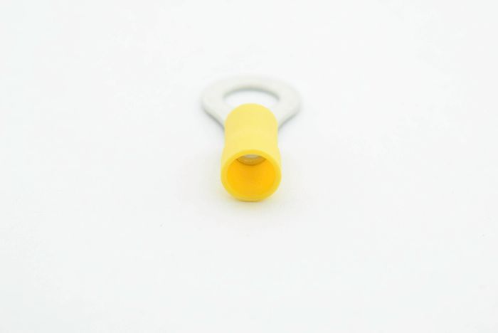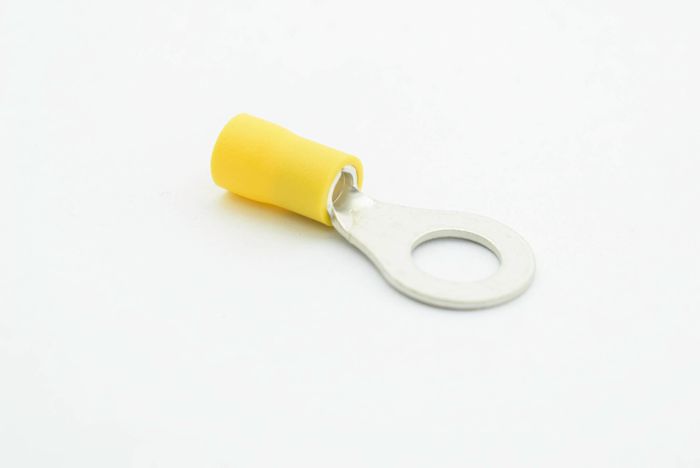 PVC ring terminal with easy entry holding a maximum cable size of 6mm and stud size of 8mm.