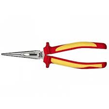 8 Inch Insulated Mega Bite long nose pliers which features an 80° cutting edge angle and titanium coated joints. It has been produced and tested according to the EN 60900 standard and is approved for live working up to 1,000 volt AC. Made from chrome molybdenum steel. DIN 5745.